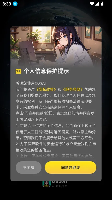 COSAI2026官方正版是一款AI聊天软件,有多元角色、丰富卡片。支持身份切换、好感度攻略等玩法,可自定义角色,多模态交互,还能创作内容、进行多语言翻译,提供个性化推荐,不断优化体验。