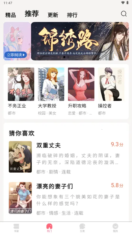 2. 丰富题材:题材丰富多样,包括日韩少女、热血动作、悬疑惊悚、科幻、耽美、搞笑、校园、青春、都市、纯爱、古装、爽文、穿越、年下攻诱受、ABO、财阀、重逢、强强、女王受、美人攻、办公室、青梅竹马、青春HEBE、韩漫、健气受、古代现代校园甜漫虐漫、穿越重生、番外、新番、bl漫画、男友力、磕CP、宅斗、纯爱、快穿、宫廷、玄幻、小说漫改等各类题材。