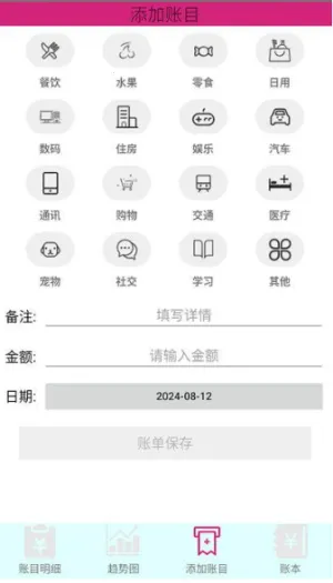 3. 助力理财:通过收支记录和分析,帮您合理规划预算,可视化趋势图让您直观看到收支变化,轻松掌握理财节奏。
