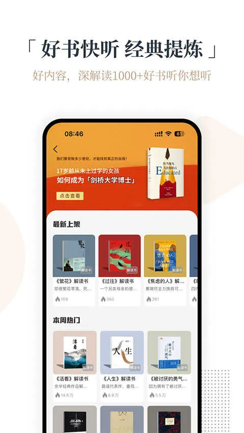 4. 免费畅听:海量有声书资源免费开放,无需会员就能畅听,充分利用碎片时间学习。