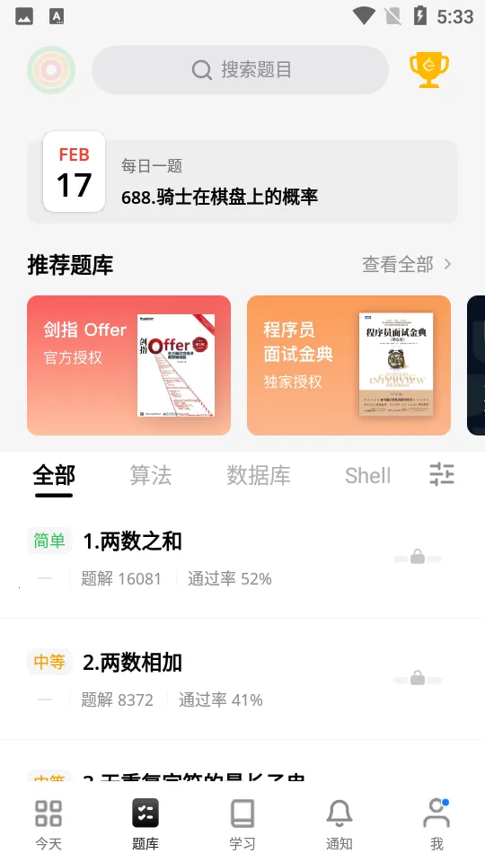 2. 题库社区竞赛融合:全球百万用户,超1450道题目,含公司真题,中国社区方便交流,在线竞赛有机会赢奖品。