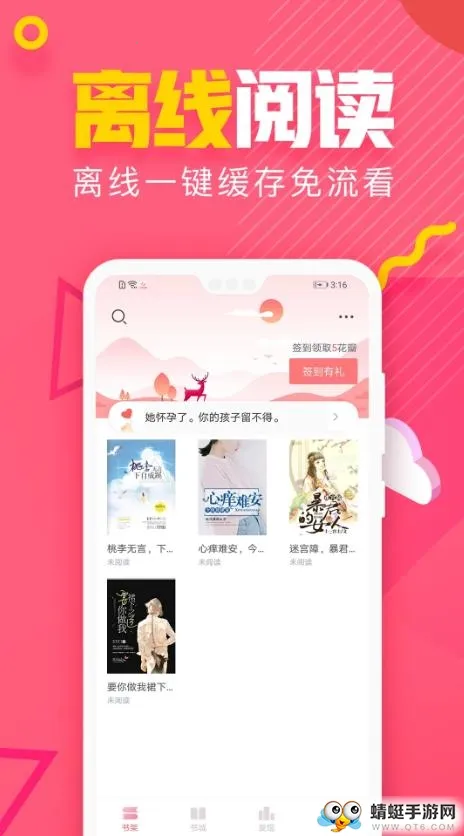 粉瓣书城安卓版是专注女性言情原创的小说阅读 app,有海量书源,涵盖多种题材。具备多种特色功能,如智能阅读、听书、护眼模式等,还有多种福利及榜单,大神入驻新书不断,满足不同用户阅读需求。