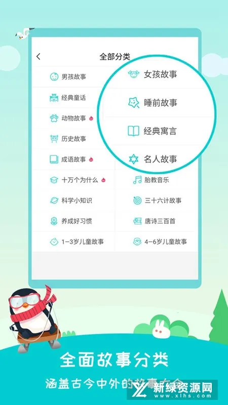 1、海量资源:涵盖少儿百科、中华文化、自然科学、艺术素养及健康成长等,还有唐诗古词、四大名著、成语典故等,经典童话、寓言、名人故事等一应俱全。