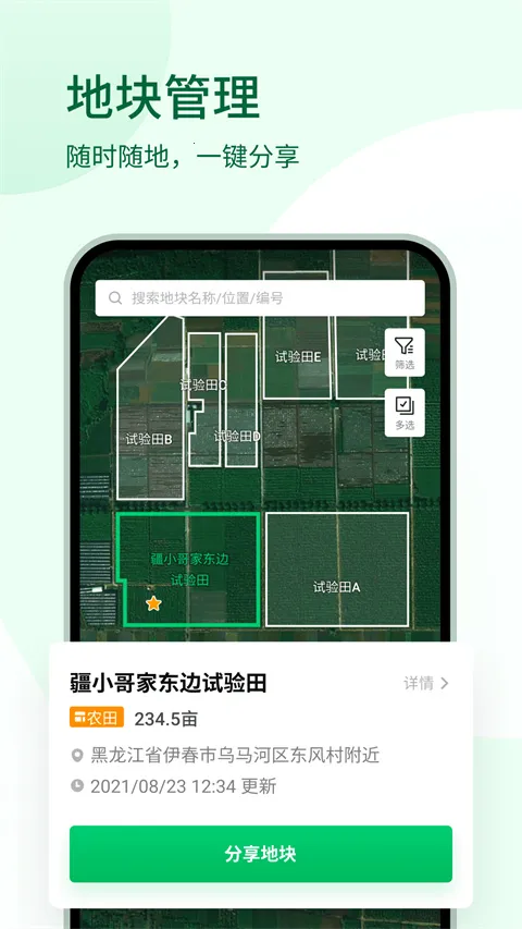 大疆农服能轻松解决你测量田地的需求。它有强大的地块管理功能,比如手指轻点就能在地块中直接完成地图测量圈选地块的操作,还能同步共享到飞机遥控器,提前规划好飞行任务。通过它,你可以方便地获取作业地块信息,并且支持团队之间重复调用,多次作业更高效。在测量田地时,它能精确记录数据,基于数据记录生成精确图表,让你直观查阅作业概况。不管是飞手还是管理人员,都能通过这款软件实时监控作业进度。有了大疆农服,测量田地变得简单又便捷,能为你的农业作业提供有力支持,大大提升工作效率,轻松搞定田地测量相关的各种需求。