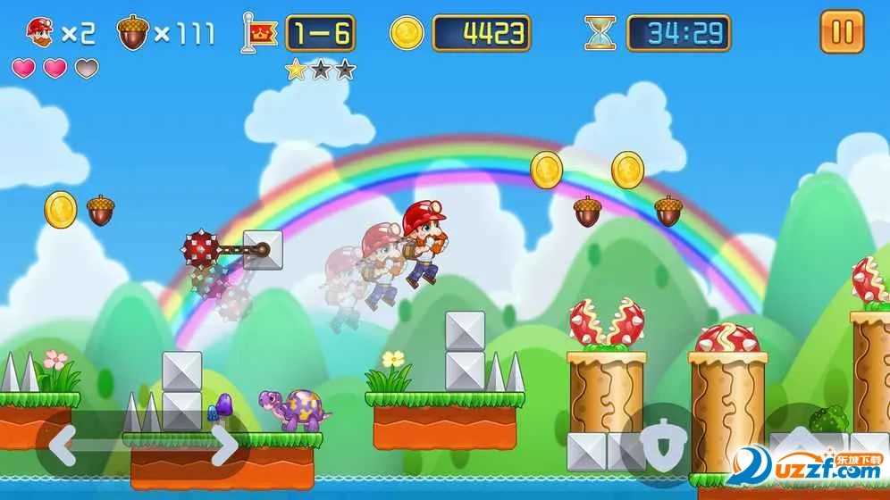 4. 多样玩法:集动作、冒险、战斗、挑战等多种玩法于一体,玩家可以选择双击或按住跳跃键跳得更高,还有射击功能,以及经典的吃蘑菇变大等玩法。