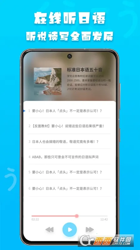 这款语言学习辅助软件专注日语学习,提供免费多样课程,专业老师在线指导。独特教学方法,如听日语杂志,沉浸式提升水平。能学地道发音、记单词,还可自测。学习资源出色,内容精心挑选,免费且丰富。无论基础或进阶,课程众多,还有听力视频、杂志阅读等模式。更新快,支持多分类,有免费学习历史记录,灵活性高,助你高效学日语,全面提升实用能力。
