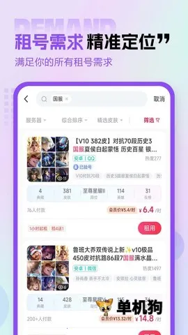 租号玩2026官方正版是专业游戏账号交易租用平台,整合海量热门游戏账号,如英雄联盟、王者荣耀等。账号优质,租金实惠,还有安全防护、便捷操作等优势,24小时客服随时服务,让玩家轻松体验高端账号乐趣。