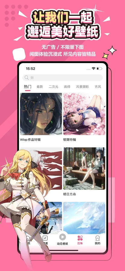 这是一款优质壁纸软件。壁纸资源超齐全,涵盖二次元、插画等多种主题。动态壁纸赋予屏幕生命,解锁似观视觉盛宴。分类丰富,动漫到风景等随心找。多端互通,电脑手机壁纸同步。高清细腻,精选1080P超高清壁纸。沉浸体验佳,一键预览滑动无死角。百万壁纸每日更新,还有智能分类标签,搜索方便。内存小不占空间,使用流畅,无广告干扰,能满足不同用户对壁纸的多样需求。