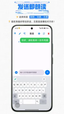 基础交流模式适合有备而来的快捷点选,比如提前打好常用语,到场景中一键播放,操作简单高效。输入即读、单击重播等功能,让交流更顺畅。双向沟通借助输入法语音转文字能力,对方说话文字自动上屏,回复方便。