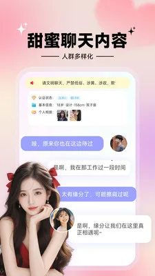 甜心伴聊是专为中年人打造的同城交友平台。女性用户真人认证、资料严审。基于位置一键速配,有文字、视频交流方式。动态广场助了解,高品质视频通话,致力于创造真诚安全环境,让交友安心,新版修复 BUG 提升体验。