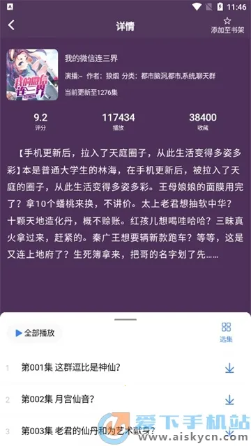 鲨鱼听书app是款超棒的听书软件。它能解决大家想听书却找不到资源、听书体验不佳等问题。软件特色超多,能让你随心选择喜欢的声音播放有声书,各种题材都有。它体积小巧,安装轻松,汇集海量免费有声书。所有有声书均来自正版资源,界面简洁无广告弹窗打扰。随时随地都能在线轻松听书,提供多种听书模式,省心又方便。比如你睡前想听书,定好定时关闭功能,就不用担心早上起来电量用光啦。还能自行设置听书语速,让听书更舒适。喜欢的小说可加入书架保存阅读记录,方便随时阅读。总之,鲨鱼听书app为用户带来了便捷又优质的听书体验,值得拥有。