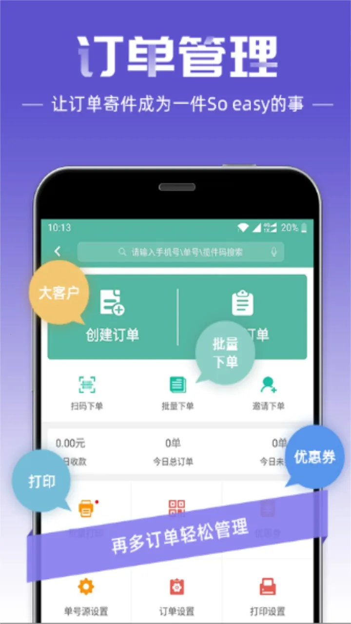 快宝快递员app是专为快递员打造的实用工具。它功能超丰富,能解决不少工作难题。群发短信通知超方便,可自由编模板,语音输手机号就能批量发,还能定时发,失败自动云呼通知,短信记录能查,申诉有保障。能代替巴枪,支持多种扫描,全流程扫描数据直接上传,无签名收据随时查,避免罚款。云呼可语音通知收件人,还有免费云通话。创建订单超智能,能批量创建,电子面单可打印。有派件通知列表,多种签收人可选,支持批量签收做问题件,大幅提升效率。手机版能上门取货、远程下单接单。还能打造个人店铺,搭建客户发展平台,管理客户更科学。总之,有了它,快递员工作更高效、便捷,能轻松完成每日任务。