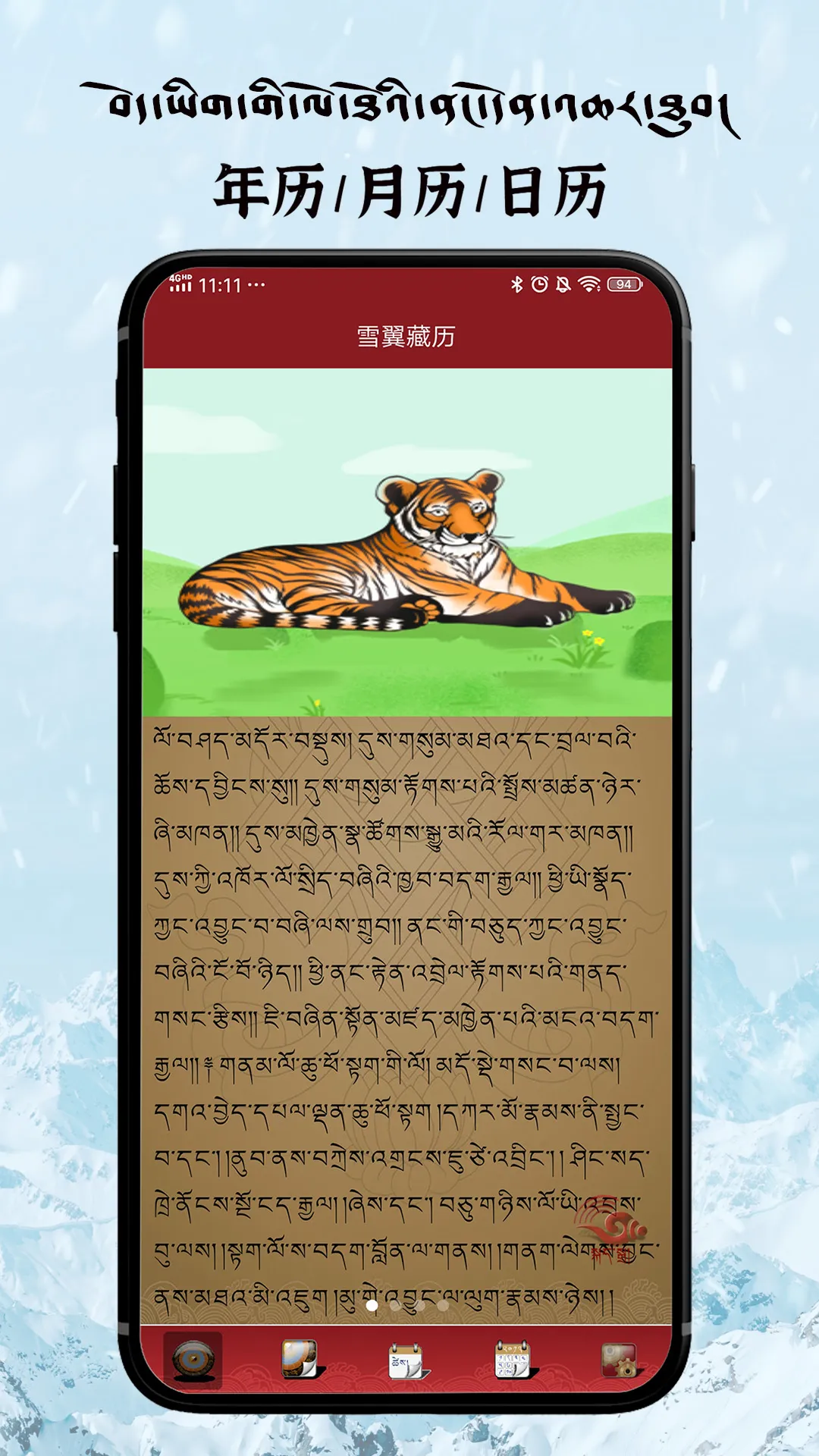 雪翼藏历语音安卓版由多方联合研发,全藏文界面,有详尽藏历年月日信息查询服务。提供精准历法数据,具拉萨语真人语音播报,还有多种特色功能及视图模式,助用户便捷查阅藏历信息与感受藏文化。