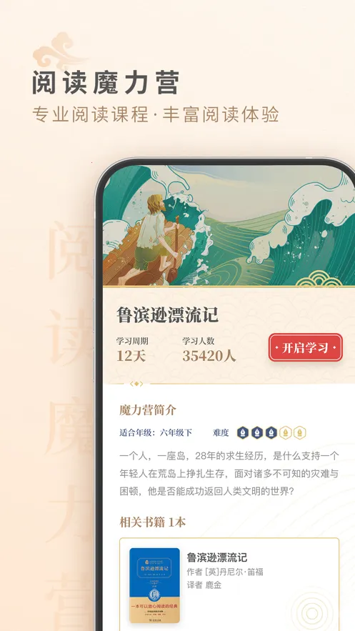 摩天轮阅读是款超棒的阅读应用。它能给不同年级学生提供适合的精彩图书,让学习轻松有趣。软件围绕统编语文教材打造阅读魔力营课程,分层次且线上线下结合,帮你制定合理阅读计划,培养阅读习惯,还能生成个性化报告。针对1 - 9年级必读书目有精彩微课,包括视频和音频讲解,还有经典阅读活动,激发阅读兴趣。其功能丰富,阅读课程简易明了,能轻松挑选喜欢的课程。个性化阅读计划设置,每天享受阅读乐趣。自动推荐精准匹配年级的书籍资源。每天古诗打卡,培养记忆力,提升文化素养。界面精美,随时打卡,像专属移动图书馆。阅读进度自动记录,书籍有详细简介,资源丰富,能满足阅读需求,助你提高阅读能力,培养阅读兴趣。