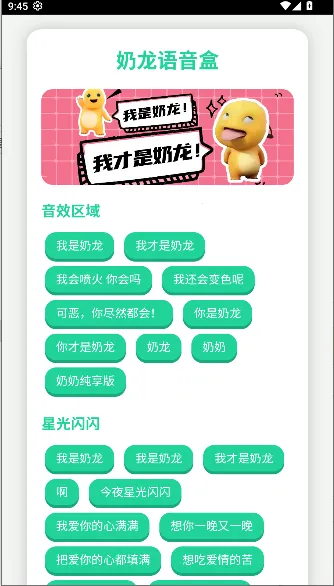 这款语音交互软件体验很棒。它安全纯净,经双重核验,无捆绑插件等干扰。界面设计简单直观,操作简便,一键操控就能在交互中使用。题材超可爱,以小龙人为主题,声音丰富。热点内容与时俱进,还有流行的迷你龙语音。支持自动播放、循环播放、收藏等功能,能满足不同需求。而且免费使用,适合各种聊天场景,在日常聊天、玩游戏、社交媒体交流中都好用,值得下载一试。