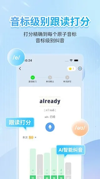 英语音标软件是学习英语音标的得力助手。它涵盖48个英语音标,每个音标都有准确朗读发音示例,还有发音方法和口型图。软件支持英音美音切换,提供详细发音技巧教学视频,有易错点讲解。通过自然拼读,给出完整音标和字母组合对照表,单词能按音节拼读,还把单词按音标分类总结,方便学习类似发音单词。具备跟读打分功能,精确到每个原子音标,能帮你校正发音。用常见词汇举例,让你边学发音边记单词。有了它,不管是零基础小白,还是想提升发音准确性的人,都能随时随地练习。比如坐公交时,打开软件就能跟着练习。它能帮你快速掌握音标发音,打好英语基础,轻松应对各种英语学习场景,让你从此告别发音困扰,自信说英语。快来下载体验吧!
