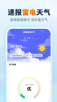 速报雷电天气是实用天气预报 APP,精准预警,涵盖温度降雨等信息,实时更新。有极端预警、趋势预测,支持天气分享。界面简洁,定位精准,能追踪天气变化,切换城市方便,还有智能助手与语音播报。
