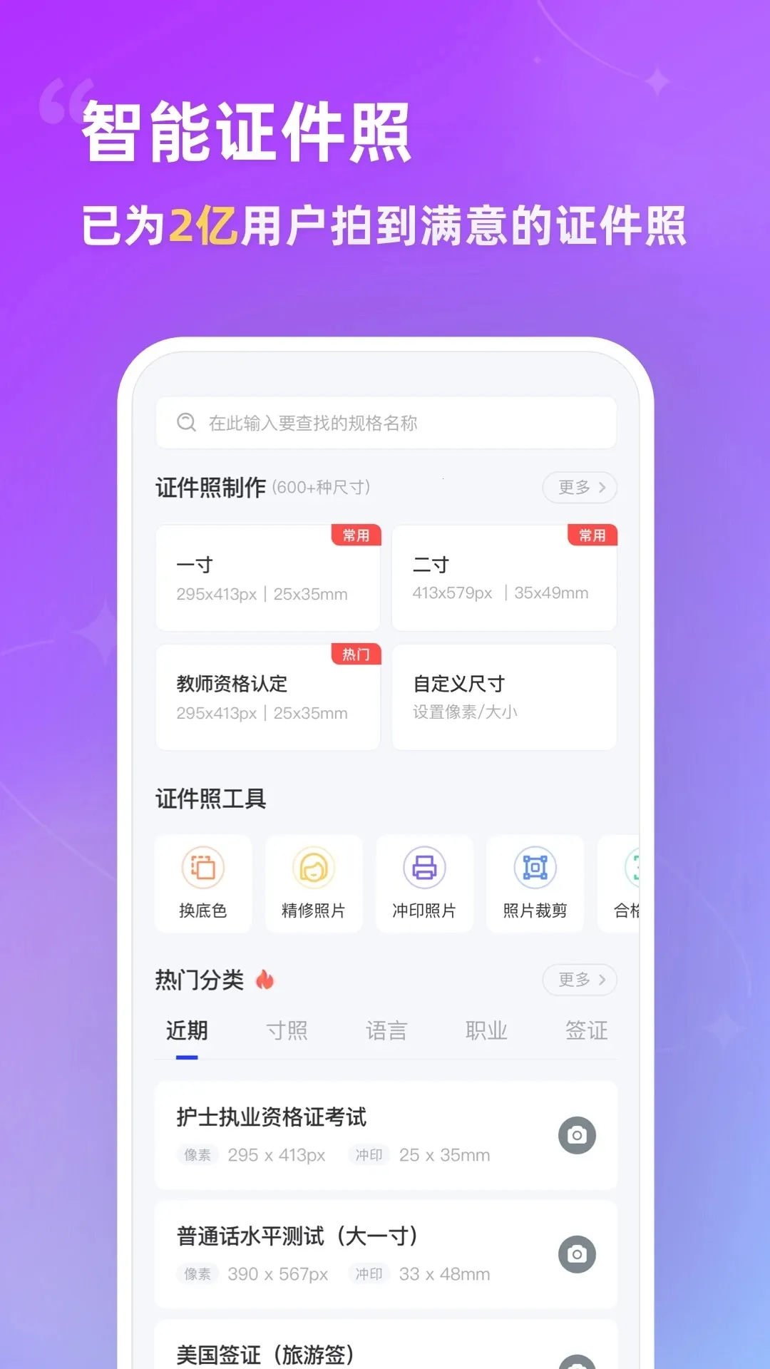 智能证件照是一款专业证件照制作软件,有强大图像处理技术。能自动抠图,提供多种背景,一键导出高清无水印照片。内置多尺寸模板,覆盖各类场景,摆脱线下照相馆困扰,满足求职、考试、政务等多种证件照需求
