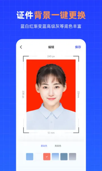 2. 精准抠图换底:能精细抠图,自动处理眼镜反光,提供多种基础底色且可自定义调色,换底规范合规。