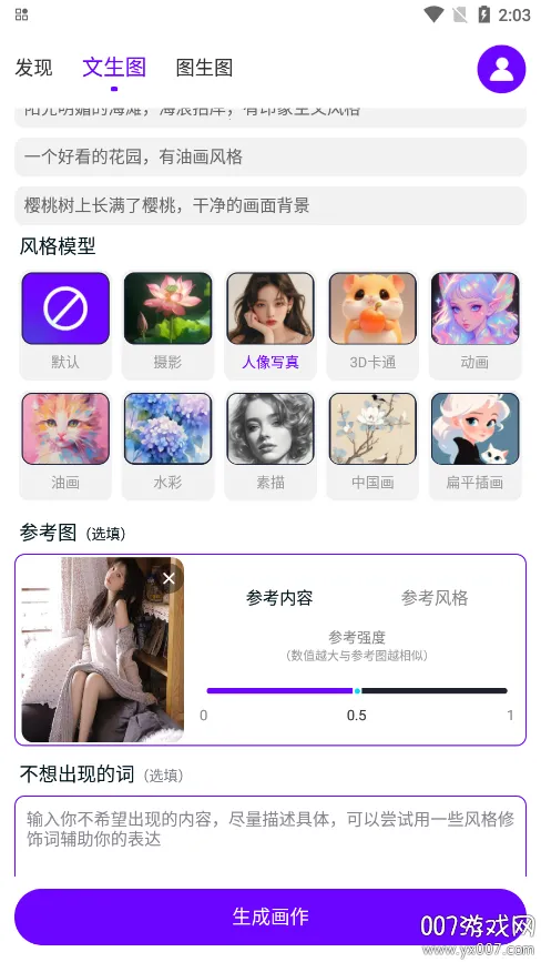 2. 风格多样自由:内置多种画风,从写实到抽象,海量风格满足各种艺术表达需求,自由探索艺术世界。