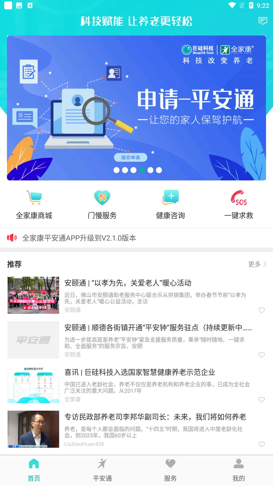 全家康平安通安卓版手机版是一款专注智慧养老的健康咨询服务软件,能与智能终端配合,实现健康监测、SOS定位等功能,提供50万医生在线问诊、防走失等服务,还有多种生活服务,全方位守护健康。