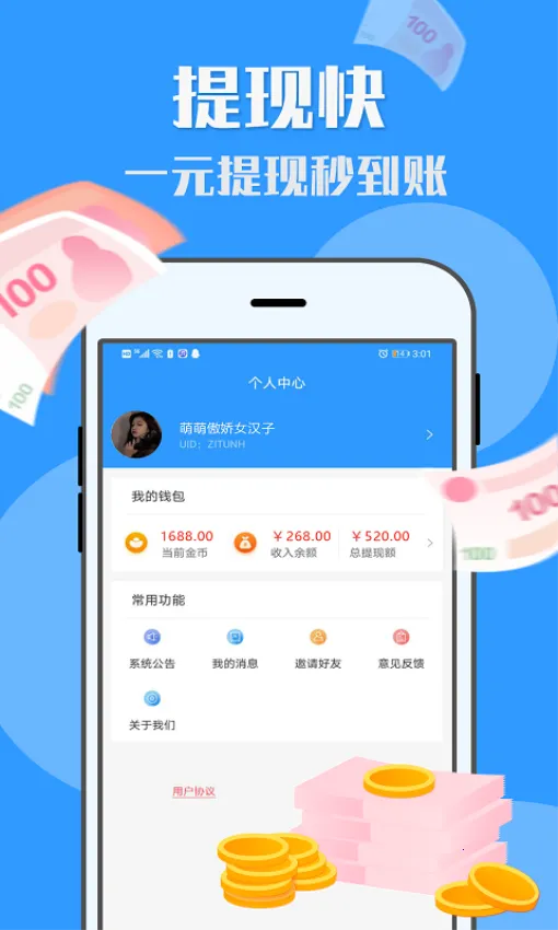 3. 快速提现:赚取的兼职奖励可快速提现,方式多样,让你及时获取收益。