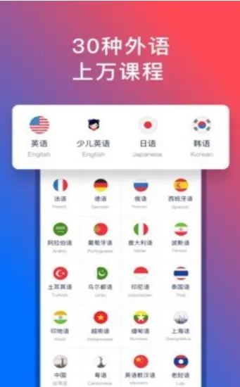 丰富学习资源:提供海量生活实用主题课程,还有单词速记、英语电影配音、应急口语等功能,涵盖30多种外语学习资源。