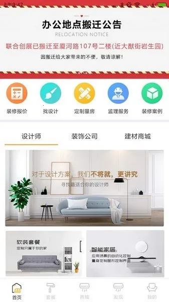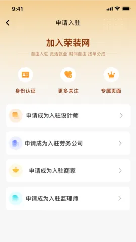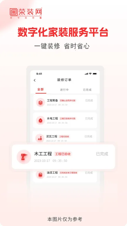 荣装网是浙江联合创展装饰股份有限公司投资的泛家装生态聚合平台,是德系互联网家装标准践行者。它能帮您解决装修难题,带来诸多便利。在这里,您能找到最好的装修团队,享受各种装修设计的一站式服务,轻松打造舒适的家庭居住环境。其功能特色超棒,一线主材都是一线品牌,环保超国标,价格、材料、施工标准透明,0增项,还有厂家直供省差价,采用别墅级德系精装工艺。软件亮点也很突出,整合资源去中间化,让家居装饰像网购一样简单;能让家兼具标准化与个性化,融入新生活;致力于高端环保家装,从主辅材料都精心挑选,打造优质高端家居,提升生活质量;还有精英设计团队提供一对一服务和专业指导。有了荣装网,装修变得轻松又靠谱,快来下载体验吧!