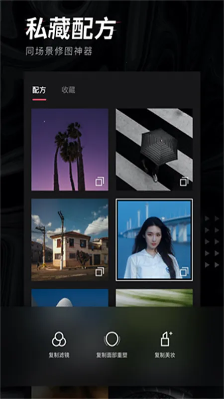 3. 创建专属修图配方:可记录色调、脸型、妆容等修图参数,随时套用,高效便捷。