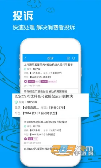 3、投诉中心功能强大,展示丰富投诉内容,包括问题及对应车辆部位等,投诉信息有编号,方便查找和跟踪处理进度。
