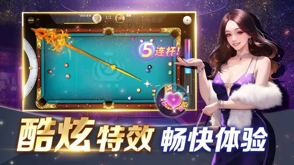 4、个性装扮:海量球杆、炫酷特效、各异球桌装饰可自由搭配。