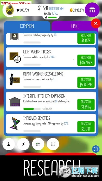 在游戏里,你可以通过连续点击屏幕孵化鸡蛋,让鸡成长并下蛋来赚钱。贸易过程中能购买先进技术和车间,提升鸡蛋和鸡的数量与质量。随着业务发展,还能扩大鸡舍仓库,升级运输车辆系统和研究区域等。这里有丰富的点击式模拟玩法,你要合理管理鸡舍,提高产蛋效率,根据市场需求调整经营策略,拓展销售渠道赚取更高利润。还能使用道具加速生产,打造强大的蛋业王国。快来开启你的鸡蛋养殖经营之旅,打造出最先进的鸡蛋公司吧!