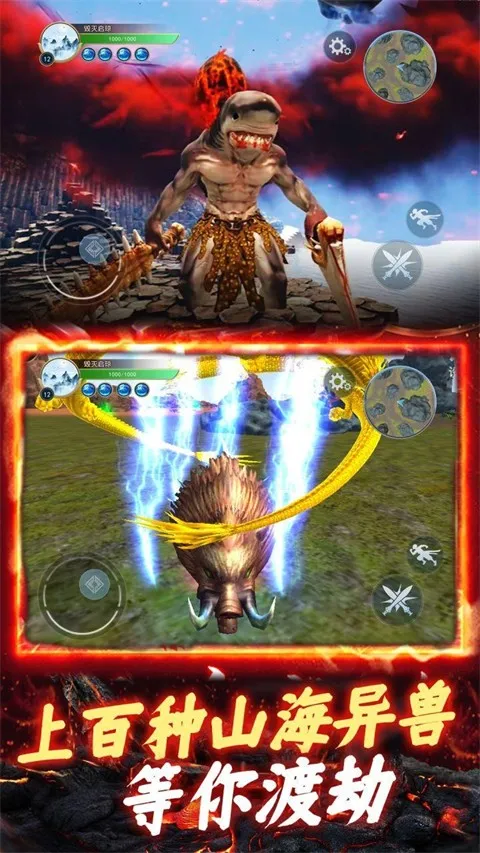 3、无缝切换的场景:多个不同的场景可无缝切换,让玩家能大展身手,探索混沌不明的洪荒原始世界,尽情感受洪荒世界的魅力与神秘。