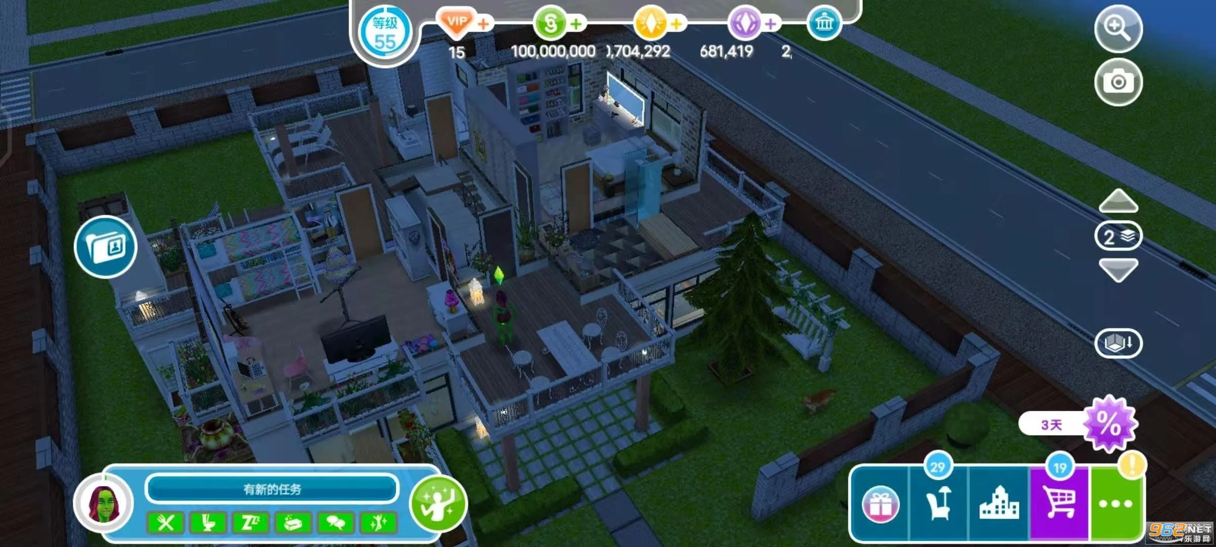 模拟人生畅玩版55级满级VIP破解版,可创建16名定制模拟人物,设计理想家园,发展职业挣模拟币,照料宠物打理花园,还有冬季更新等特色玩法,现拥有无限金币钻石、满级及各类丰富物品。