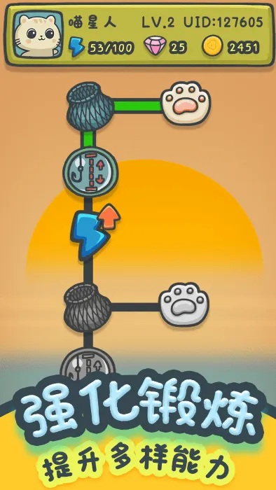 2、数十只原创猫咪,外形灵动且动作细腻,专属技能树与成长路径独特。