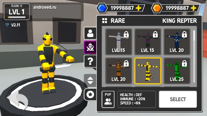 1、打开人类大乱斗游戏后,进入“皮肤”界面,自由更换角色造型。