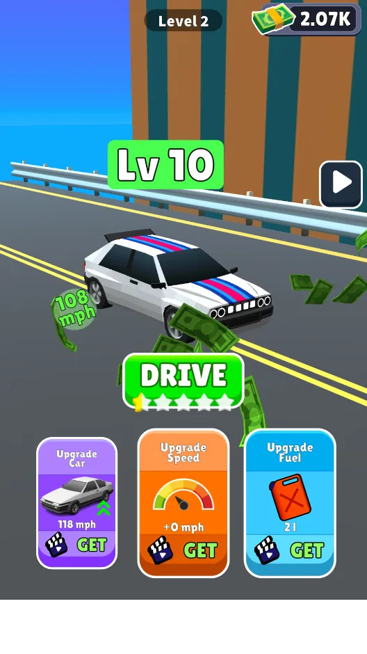 它的玩法简单易上手,进入游戏点击drive开始,控制车辆左右移动获取资源,结算获得金钱强化初始强度。其界面简洁明了,色彩搭配和谐,图标设计清晰,操作起来特别轻松,各个年龄段的人都能快速上手。每次完成特定操作还有即时的视觉和音效反馈,通过积分、徽章、排行榜等激励机制,鼓励你持续玩下去,培养长期游戏习惯。快来体验这款趣味十足的齿轮进化游戏吧!