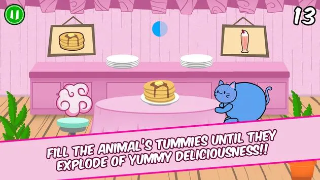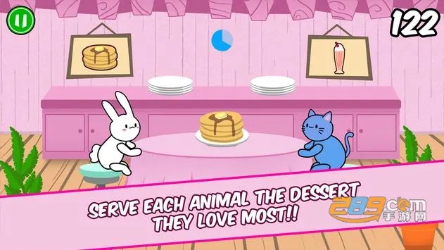 在《煎饼和奶昔》模拟游戏中,你化身大厨给兔子、小猫喂美食。操作简单,左右滑送食物赢分,注意食量。关卡有趣,还有能量道具。要留意动物口味,冲击高分进全球排行榜,否则任务易失败。