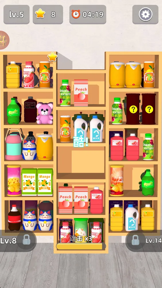 点击同意并继续按钮进入游戏,先读基础规则说明,熟悉界面和操作。长按物品拖动到指定区域移动,掌握摆放顺序和位置,提高整理效率。比如把橙子移到下方完成当前关卡,理解消除逻辑和通关条件。掌握基础操作后挑战后续关卡,难度提升时合理规划收纳顺序,应对复杂布局。