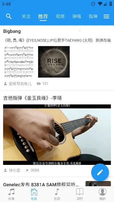 3. 活跃社区:包含多个学习版块,是吉他爱好者交流的地方,能自由分享见解、发布二手交易等信息。