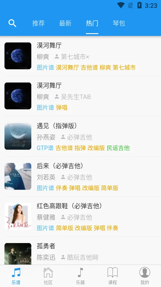 4. 便捷搜索:可按歌曲或歌手搜索谱子,方便快速找到想要的吉他谱。