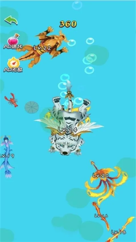 1. 多种进化方式:能在游戏解锁不同角色,不断吞噬可遇新角色,从小蝌蚪逐步进化到顶级神龙或神兽。