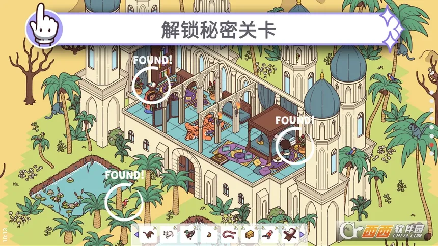 这款游戏画风清新,是2D手绘风格的寻物冒险佳作。画面高清细腻,色彩柔和,长时间玩也不易疲劳。关卡设计巧妙,目标物品可能与背景高度融合、尺寸微小或被动态元素遮挡,很考验耐心与细节捕捉能力。操作轻松,节奏舒缓,支持随时暂停,还能使用提示道具。海量主题关卡自由切换,玩法多样。相比前作大幅扩容,新增众多内容,动态环境系统上线,创意表达贯穿始终。是一款兼顾趣味性、艺术性与放松感的优质休闲游戏,值得加入手机常驻清单。
