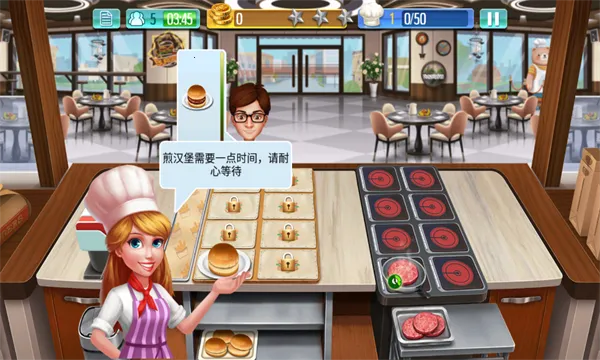 2、高度还原的美食烹饪:精心烹制蛋糕、肉片、烧鸡等美味佳肴,将制作完成的佳肴整齐地摆放在柜子里。游戏对美食烹饪的还原度极高,玩家需要根据顾客的喜好,快速烹饪出美食并端给顾客。