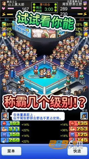 这是一款像素风格的模拟经营休闲手游。玩家能解锁多样拳击手冒险,通过训练、升级强化提升其属性,参加比赛赢奖励解锁更多玩法,还能建造各类建筑。游戏中可与助手为拳击手加油助威,胜利积累后能建澡堂、食堂等设施。以馆长身份带领选手,借助其人气吸引更多人才,与教练协作培养拳王。在这里,能尽情体验养成的浪漫与激情的拳击战斗,感受独特的经营乐趣。