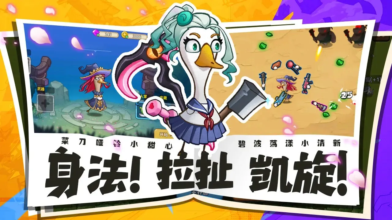 鹅鹅鹅安卓版是一款肉鸽射击手游,随机掉武器技能,每局流派全新。可选萌系鹅英雄闯趣味关卡,道具技能随意搭,场景精心设计,玩着解压又上瘾,快来当暴躁鹅享受暴力输出的快乐!