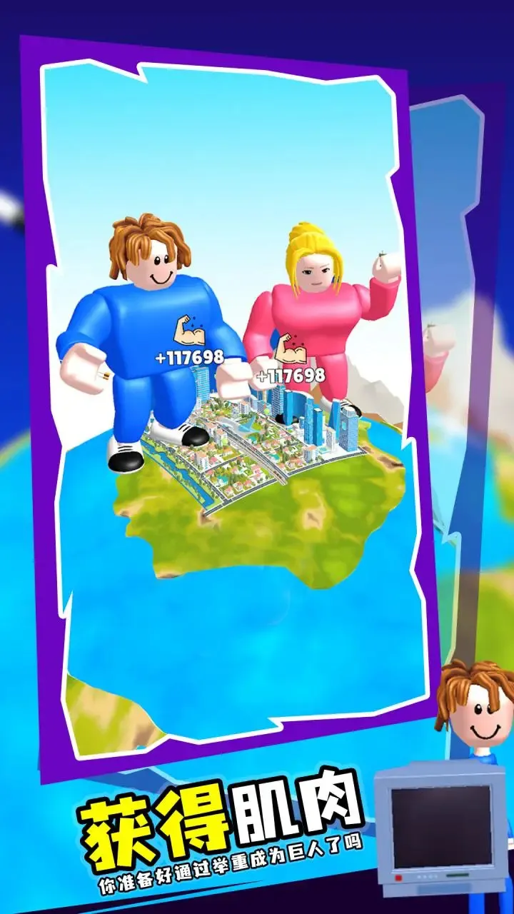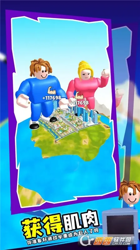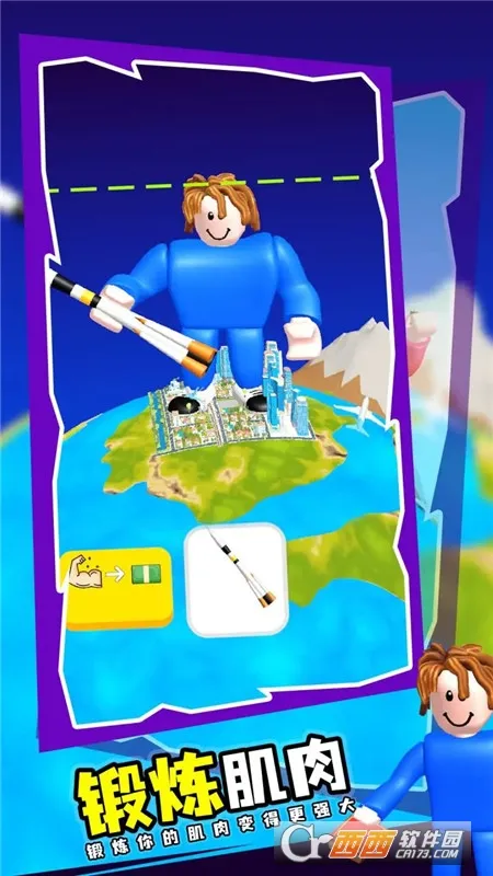 4、见证成长乐趣多:丰富场景见证玩家成长,收集不同体积和重量物品参与举重比赛,随着历练增加能举起更重物品,如巨石甚至房子。