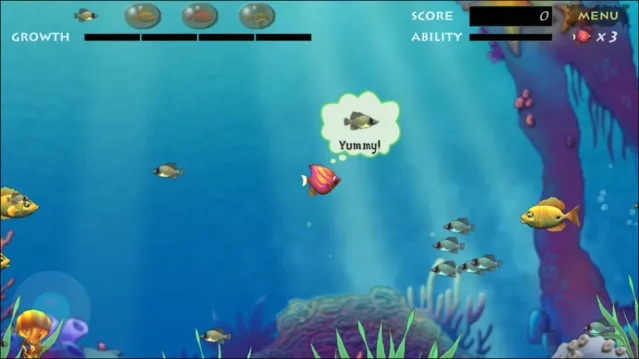 4、然后操控小鱼去吃掉其他的鱼即可,左上角是饱食度,并且达到一定的要求还会解锁成就。