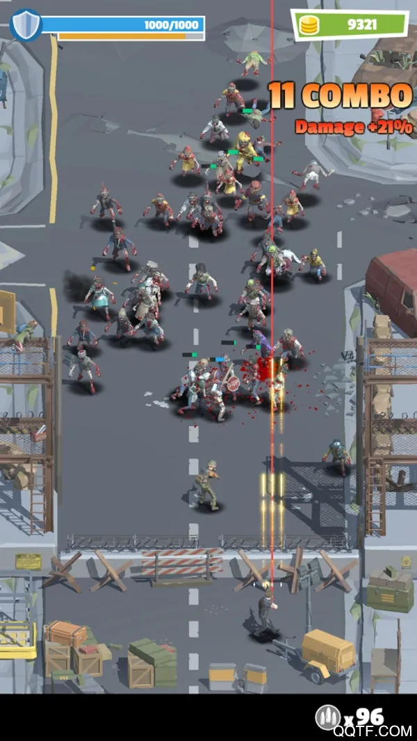 简单易上手操作:采用虚拟按钮和触摸屏相结合的方式,操作简单,左右滑动即可阻击丧尸入侵,玩家还能通过升级提升射速、火力及子弹数量,闯关更轻松。