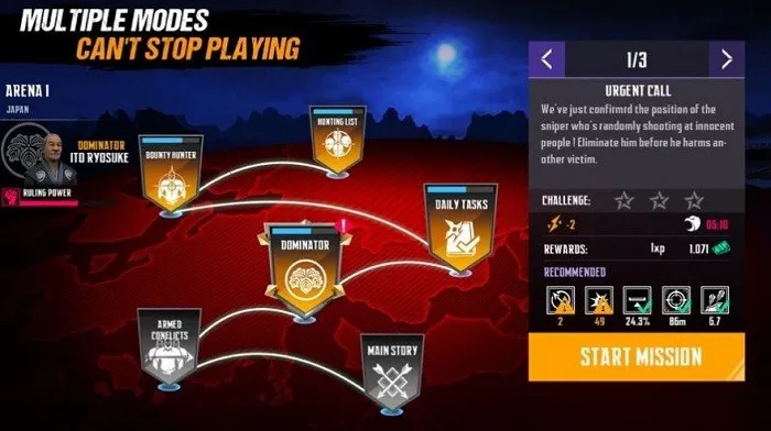 2. 多样玩法极具挑战与乐趣:关卡难度不断提升,需灵活应对才能取胜。还有主线任务、每日任务、猎杀名单等多种玩法,玩家大多数时候可选择潜行击杀敌人,也能硬拼,玩法丰富多样。